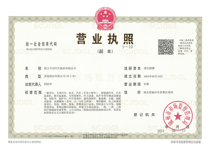 程力最新營業執照,程力專用汽車股份有限公司營業執照,程力新版營業執照,湖北程力汽車營業執照程力汽車官網:m.ztjcty.com,程力專汽政府和事業單位專用汽車…
