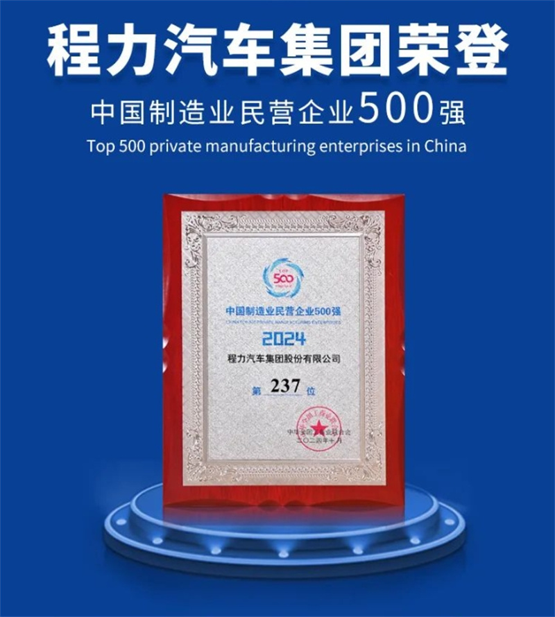 程力汽車集團(tuán)再次榮登2024中國民企500強(qiáng),改革創(chuàng)新建世界一流企業(yè)