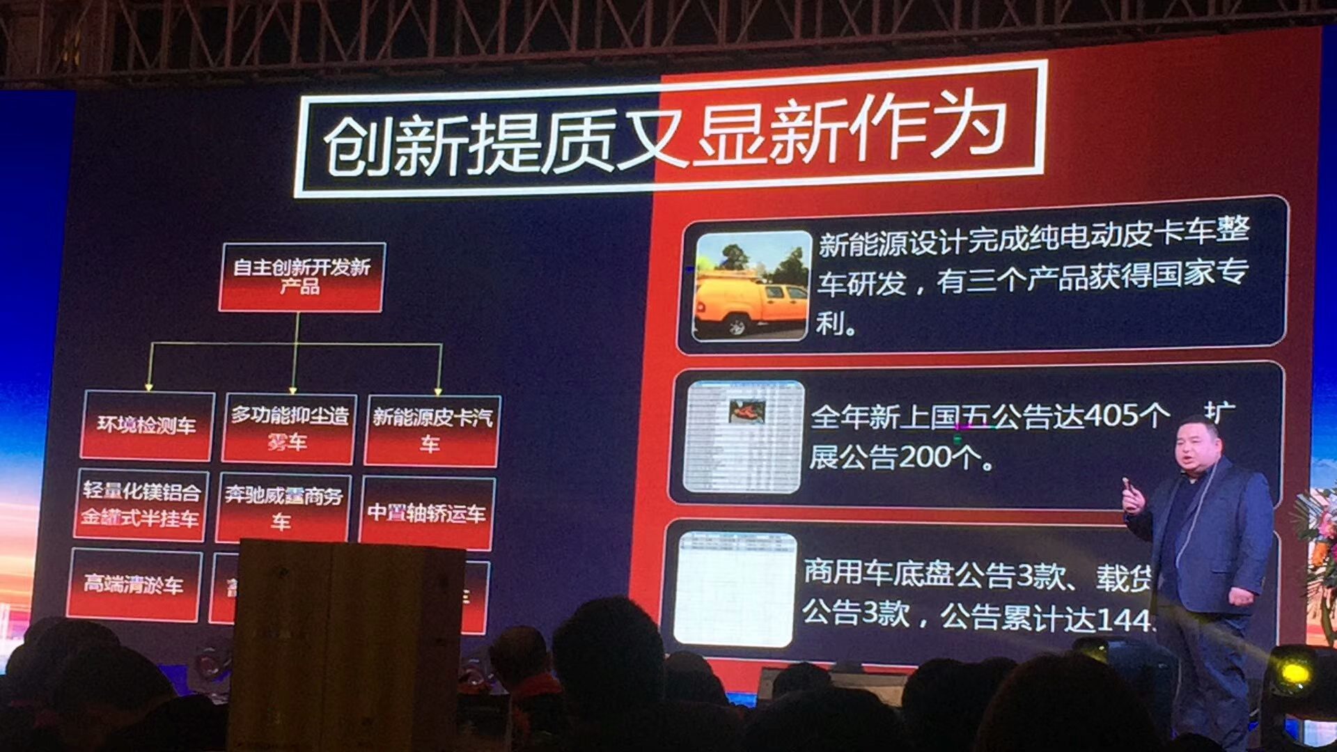 創(chuàng)新引領(lǐng)新作為,高質(zhì)促進新發(fā)展-湖北程力汽車集團2017年企業(yè)工作報告 今天,湖北程力汽車公司的新春年會,圓滿召開! 一、2017年湖北程力汽車公司取得的成績,生產(chǎn)各類專用汽車產(chǎn)值36億元,創(chuàng)造年產(chǎn)值增長10億的奇跡,回顧2017年展望2018年在新的一年里目標是突破40億元邁向50億元。 自主創(chuàng)新開發(fā)新產(chǎn)品:環(huán)境監(jiān)測車、多功能抑塵造霧車、新能源皮卡汽車、輕量化鎂鋁合金罐式半掛車、奔馳威霆商務車、中置軸轎運車、高端清淤車、蓄能供熱車、清淤運輸車!