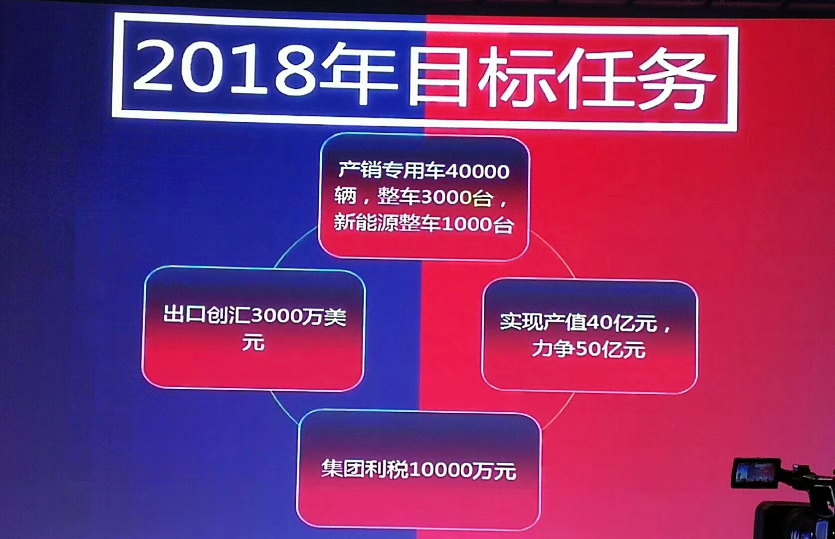 四、2018年目標任務:產(chǎn)銷專用車40000輛,整車3000臺,新能源整車1000臺,實現(xiàn)產(chǎn)值40億元,力爭50億元 |