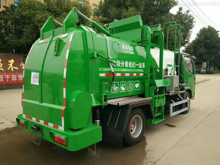 餐廚垃圾車,又稱餐余垃圾車、余廚垃圾車或者泔水車,是用于收集和運輸生活垃圾、食品垃圾(泔水)及城市淤泥的專用車輛,改裝部分具有裝、卸垃圾自動化程度高、工作可靠、密封性好、裝載容積大、操作簡便、作業過程密閉,無污水泄露和異味的散發,環保性好等特點。可配裝載不同規格的標準垃圾桶,具有廣泛的適用性。 該車型外形美觀,性價比高、安全可靠、駕駛便捷。主要用于收集與轉運餐飲業、賓館、單位食堂等產生的餐廚垃圾,也可用于收集與轉運居民小區廚余和生活垃圾。 上裝由箱體、后門機構、密封鎖緊機構、推板機構、掛桶機構及操縱機構組成。 餐廚垃圾車主要性能及配置: 固液分離: 將桶裝餐廚泔水垃圾經專用提升架緩緩上提,在車頂部倒入車廂內,被投放的垃圾經過強有力的推板擠壓,垃圾箱底部與推鏟板面設置大量過濾孔,可真正實現箱內餐廚垃圾固液的初步分離,被分離的液體進入箱體底部的污水箱,固體垃圾被壓縮儲存在罐體,體積變小,如此反復待裝滿后送至餐廚垃圾資源優化處理廠卸料。餐廚垃圾裝載由垃圾桶提升系統完成,該系統具有垃圾桶鎖止結構,裝卸安全可靠。垃圾桶與垃圾投入口銜接好,保證裝卸過程中餐廚垃圾不溢撒、不遺漏。垃圾投入口與推板之間有足夠距離,推板與罐體內表面設有密封裝置,避免餐廚垃圾投入過程及分離過程中溢到推板后方。 液壓系統由泵、液壓閥和順序閥以及各種功能的液壓油缸、高低壓管路組成。關鍵部件可選用原裝進口,保證產品工作可靠、安全 罐體內分上、下兩層,下層為固液分離后污水收集箱,污水箱兩頭高,中間低,設有排污口,以保證污水排放干凈。 湖北程力國六5方多利卡福瑞卡餐廚垃圾車(廂式方罐)程力威牌CLW5073TCA6型餐廚垃圾車CLW5040TCALS6型餐廚垃圾車多方位圖片: