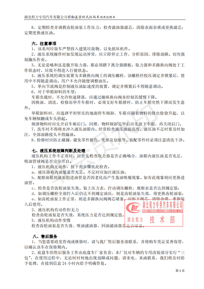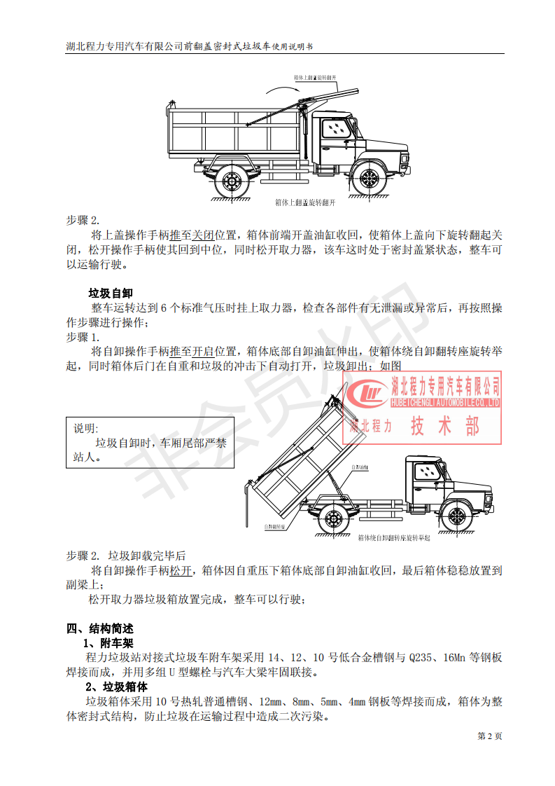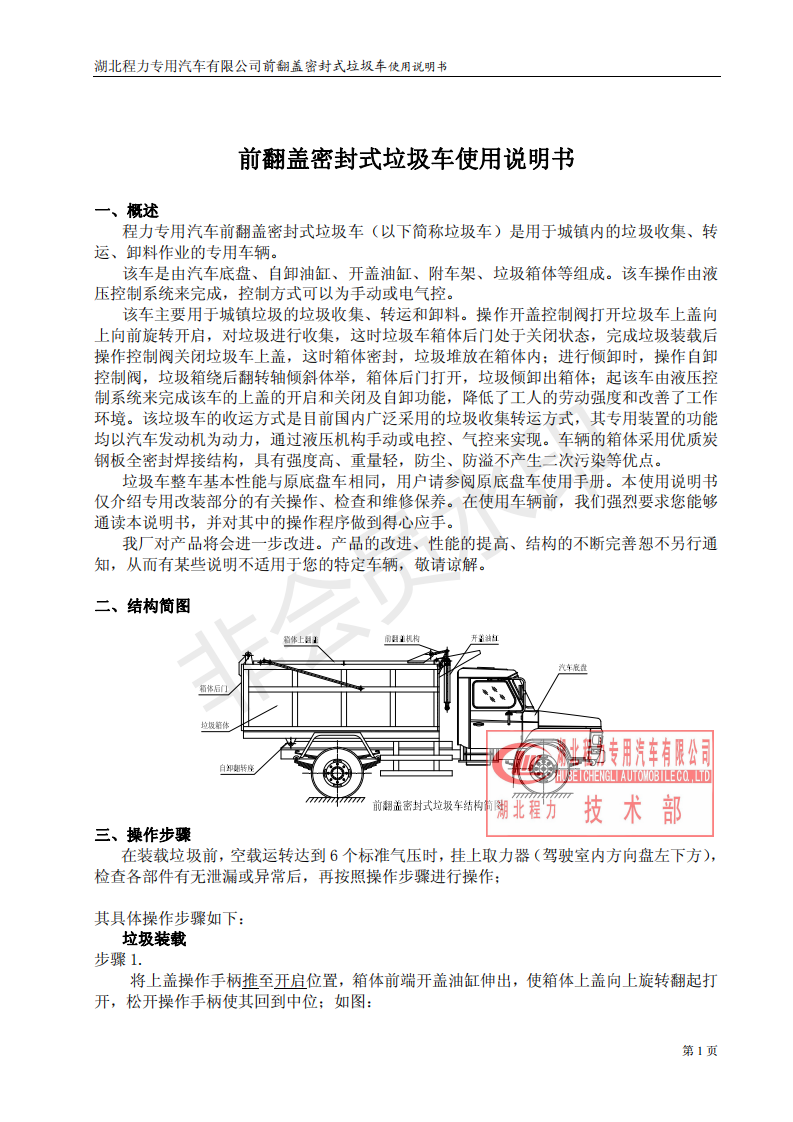 湖北程力密封自卸垃圾車使用維護(hù)說明書(程力自卸垃圾車如何使用