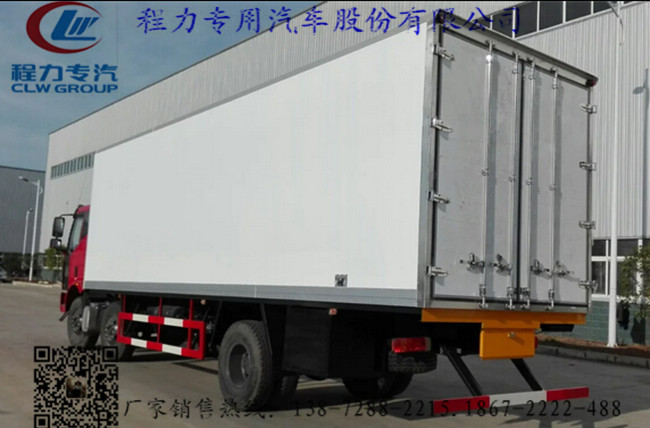 2.上裝配置:冷藏廂體內部有效尺寸:長7.7~8.7米×寬2.35米×高2.5米,廂體蒙皮采用內外玻璃鋼,