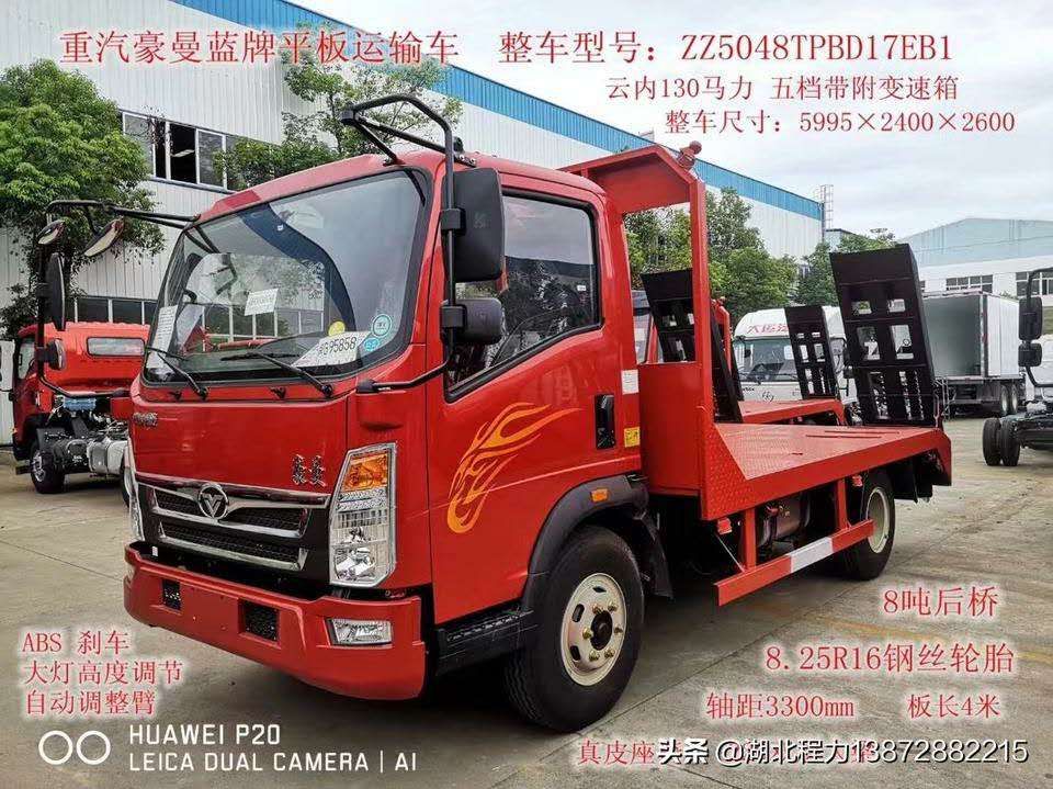 湖北程力熱銷藍牌挖機平板運輸車車型參數與價格