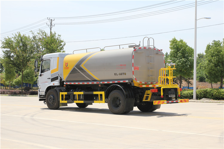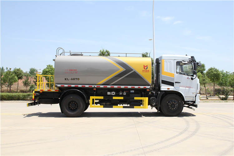 國六東風華神14方綠化噴灑車(灑水車)新款國六東風華神灑水車 程力威牌14-15方綠化噴灑車! 東風華神F5國六14-15方綠化噴灑車灑水車技術參數 1.總質量:18T,底盤采用東風華神F5駕駛室4500mm軸距國六排放二類底盤。 2.發動機額定功率:147KW(玉柴200馬力)或者康明斯230馬力 3.罐體有效儲水容積:12.04m3 4.輪胎規格:10.00R20 5.整車參考外形尺寸:7970*2550*3300 mm 6.罐體鋼板厚度:4mm 7.車輛前部配有四個鋁合金噴嘴,可作上、下、左、右方向調節。車輛后部配有兩個鋁合金噴頭。各噴嘴(頭)均可單獨進行手柄開關控制。 8.高壓水槍可以水平360°回轉,可以作上下150°傾斜,具有水柱擴散調節功能。 9.灑水寬度≥15 m 10.高壓水槍射程≥25--45 m 11.自吸深度≥7 m 12.霧炮射程≥25 m 13.灑水量滿足≥0.5 L/m2 14.沖洗速度選擇:二檔15-18 km/h,三檔23-25 km/h 15.發動機在運轉情況下踏下離合器能進、出水泵取力器。