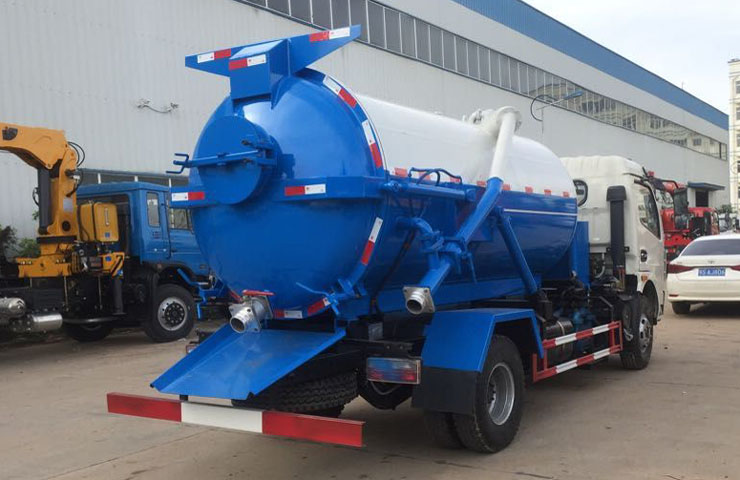 5】程力吸污車具有液壓舉升自卸功能,便于將各種污泥傾倒干凈。而且后罐門可以液壓自動開啟,便于清理罐體內的沉積物、凝固物及對罐體內部進行維修、保養。